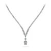 This single strand of diamonds is anything but simple, especially when adding the halo emerald gemstone pendant. The unique V shape begs the eye to accompany it as it graduates into a beautiful tip showcasing the biggest of the necklace’s diamonds and finished off with a gemstone pendant. The 4-prong setting creates an extra smooth look and can be completely customized with your preferred metal type and diamond quality! All gemstones are AA quality.