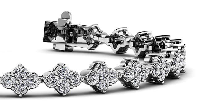 A touch of elegance to grace your wrist. Four brilliant diamonds are prong set in a sophisticated clover to create each of the links for this unique bracelet. This is an ideal symbol of hope, faith, luck and love to wear everyday or for that special occasion.