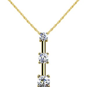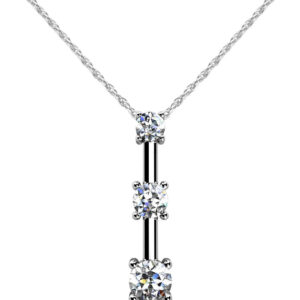 Take three glistening diamonds, and carefully prong set them. They are separated by fabulous metal columns, this just might be perfection at its finest! You can have this lovely pendant created in gold or platinum, and it’s available in 3 different combinations, ranging from ¼ carat to half a carat. A wonderful addition to any jewelry wardrobe!