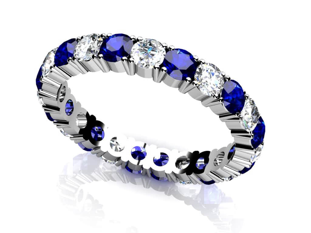 Gemstone And Diamond Eternity Ring In 14K 18K White Yellow Gold Platinum