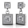 A pair of gorgeous drop earrings is the perfect modern accessory. These earrings feature small squares with a fabulous, prong-set round gemstone of your choice. A double link and another square holding a larger gemstone, with small diamonds surrounding it, dangles perfectly. These feature 1.5 carats of total weight, and the design on these will truly sparkle from every angle. These gemstone earrings have a vintage appeal with special filigree edge details and should appeal to anyone looking for a unique accessory!