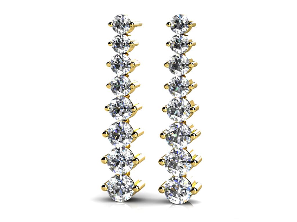 Just as your love has grown over time, this incredible pair of earrings is a reminder of that. The diamonds in these earrings start small, but graduate to a larger stone at the bottom of these ‘drop’ rows! You can have these earrings made in 5 different sizes, and the total diamond weights range from 1 to 3 carats . to suit every budget! As with all of our incredible pieces, theses earrings can be crafted in gleaming gold or platinum. These earrings are like a waterfall . simply mesmerizing to watch!