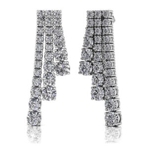These triple row dazzling drop earrings will accentuate any romantic evening. These striking seamless prong set earrings are available in gold or platinum. Perfect your red-carpet evening with these stunning drop diamond earrings.