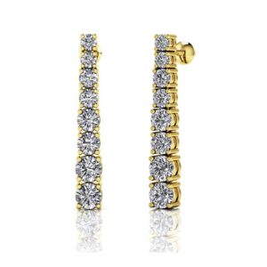 A dangle of glistening diamonds creates this classic design. Graduated round diamonds are one inch of sparkling delight. Versatile and elegant these drop earrings are a perfect pair to add to your jewelry collection.