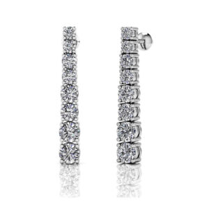 A dangle of glistening diamonds creates this classic design. Graduated round diamonds are one inch of sparkling delight. Versatile and elegant these drop earrings are a perfect pair to add to your jewelry collection.