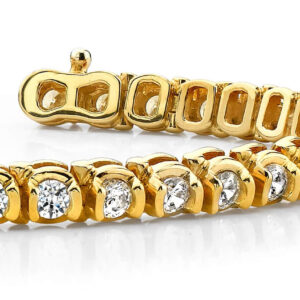 Half Bezel Circle Link Diamond Tennis Bracelet In Yellow White Gold Or Platinum