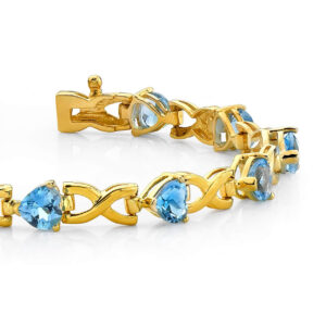 Here’s a fabulous twist on a classic ‘x-link’ design, and the prong-set colored stones look dynamic on this bracelet. The stones are cut in the wonderfully symbolic heart-shape, which is a little unexpected, but will definitely be appreciated! Anyone will enjoy these 12 incredible gemstones set in your choice of gold or platinum. Be sure to get this one-of-a-kind today!