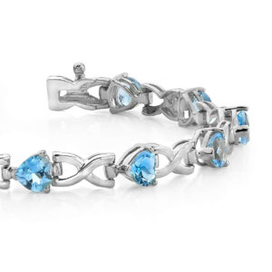 Here’s a fabulous twist on a classic ‘x-link’ design, and the prong-set colored stones look dynamic on this bracelet. The stones are cut in the wonderfully symbolic heart-shape, which is a little unexpected, but will definitely be appreciated! Anyone will enjoy these 12 incredible gemstones set in your choice of gold or platinum. Be sure to get this one-of-a-kind today!