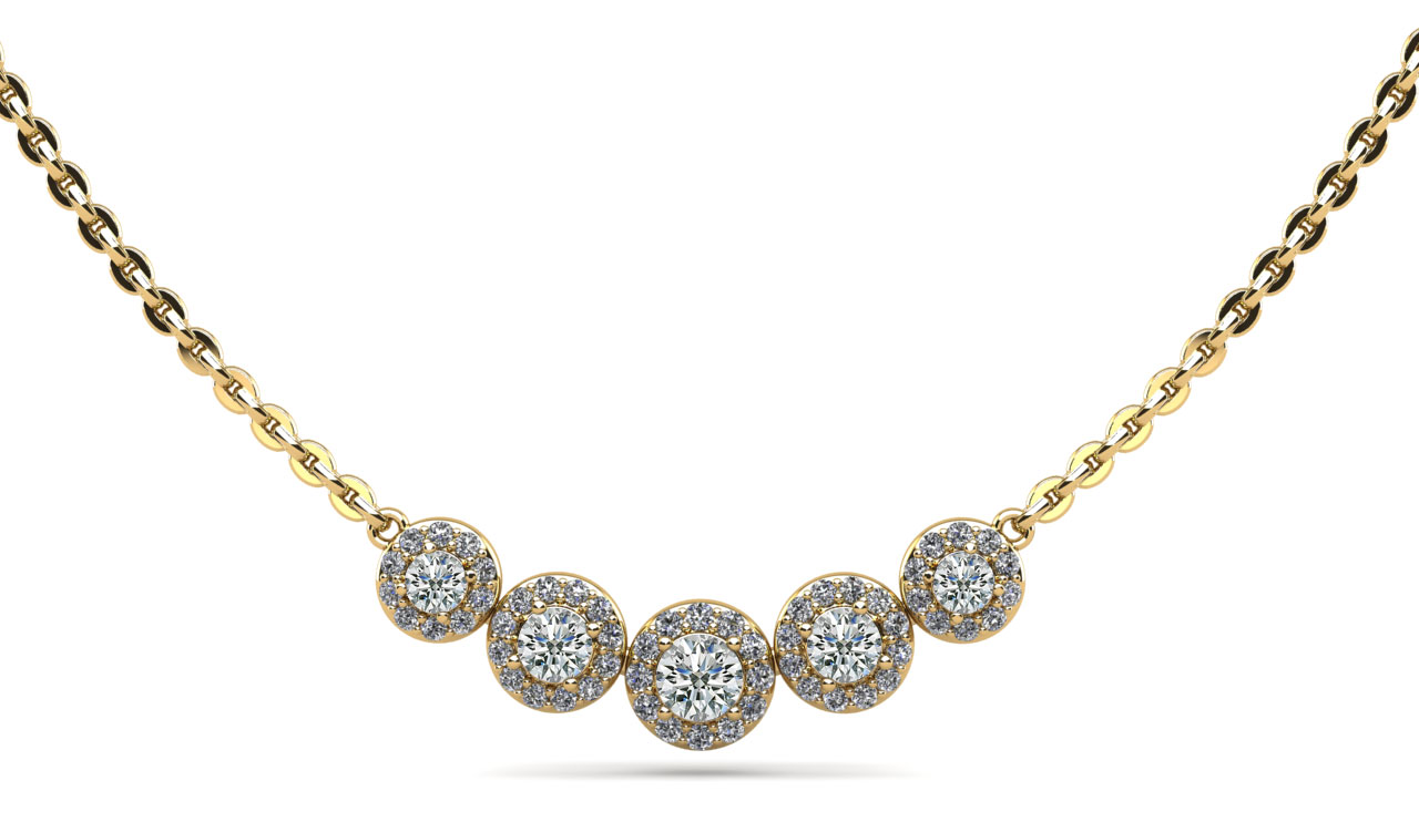 Our Heavenly Halo Diamond Pendant features a center diamond surrounded by a halo of smaller diamonds. The halo design magnifies both the size and sparkle of the center diamond for a luxurious effect. Design yours in a choice of 14k or 18k yellow, rose or white gold or platinum.