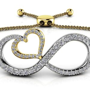 Infinite Love Diamond Heart Adjustable Bracelet In Platinum Or Gold