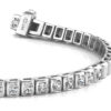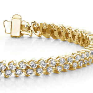 Here’s a divine bracelet from our collection. Lovely, round, prong-set diamonds are ‘offset’ in 2 rows. This piece is available in 3 sizes, ranging from 4 to 6 carats total diamond weight. You can have it personalized just for you, by having our craftsmen make it in gold or platinum! Definitely divine!