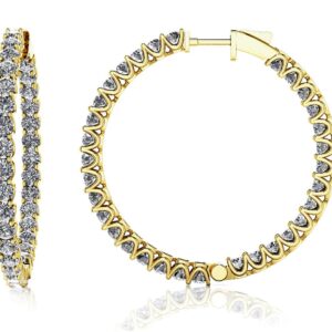 Create effortless style with our exquisite inside out diamond hoop earrings. Classic and elegant, twinkling diamonds are perfectly set in your choice of 14k or 18k gold or platinum to add sparkle to any look.