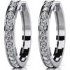 A single row of glistening diamonds is held secure with a shared prong setting in this gorgeous diamond hoop earring design. Available in four carat sizes, they feature our easy to use and secure push button closure. Customize according to your favorite metal type.