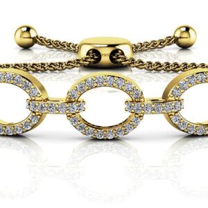 This adjustable bracelet features open oval shapes with prong set sparkling round diamonds. Each oval is joined by an elegant link of brilliant diamonds to create a stylish design. This touch of glamour adds a distinct finish to your everyday style.