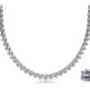 First, you add one classic graduated style diamond row. Second, you add a daring graduated row that dips into a point. Thirdly, add a brilliant halo emerald pendant! This modernly elegant double row diamond necklace drops the perfect amount of brilliance to your jewelry collection!