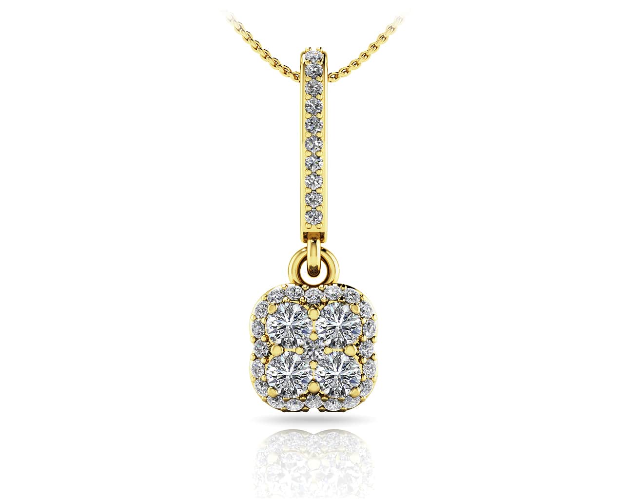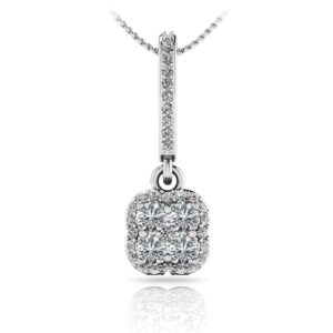 This beautiful design features four larger diamonds surrounded by a halo of smaller diamonds and a diamond in the middle to top it off. This everyday pendant will effortlessly dress up any occasion and radiate elegance. These diamond stud earring will make any woman feel lucky to be in love!