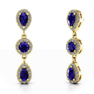 Ignite the passion in your romance with genuine gemstones. These dazzling three gemstone earrings feature a round gemstone center paired with a pear shape gemstones highlighted on each end. Add your unique touch by choosing your personal gemstone.