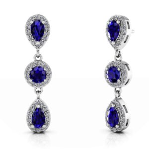 Ignite the passion in your romance with genuine gemstones. These dazzling three gemstone earrings feature a round gemstone center paired with a pear shape gemstones highlighted on each end. Add your unique touch by choosing your personal gemstone.