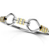 This unique and elegant diamond cuff is sure to capture attention. A luxurious gold mounting holds brilliant round diamonds, which are expertly set to form the elegant pattern inlay within the cuff. Flexible yet robust, this beautiful bracelet is the perfect complement to your look.