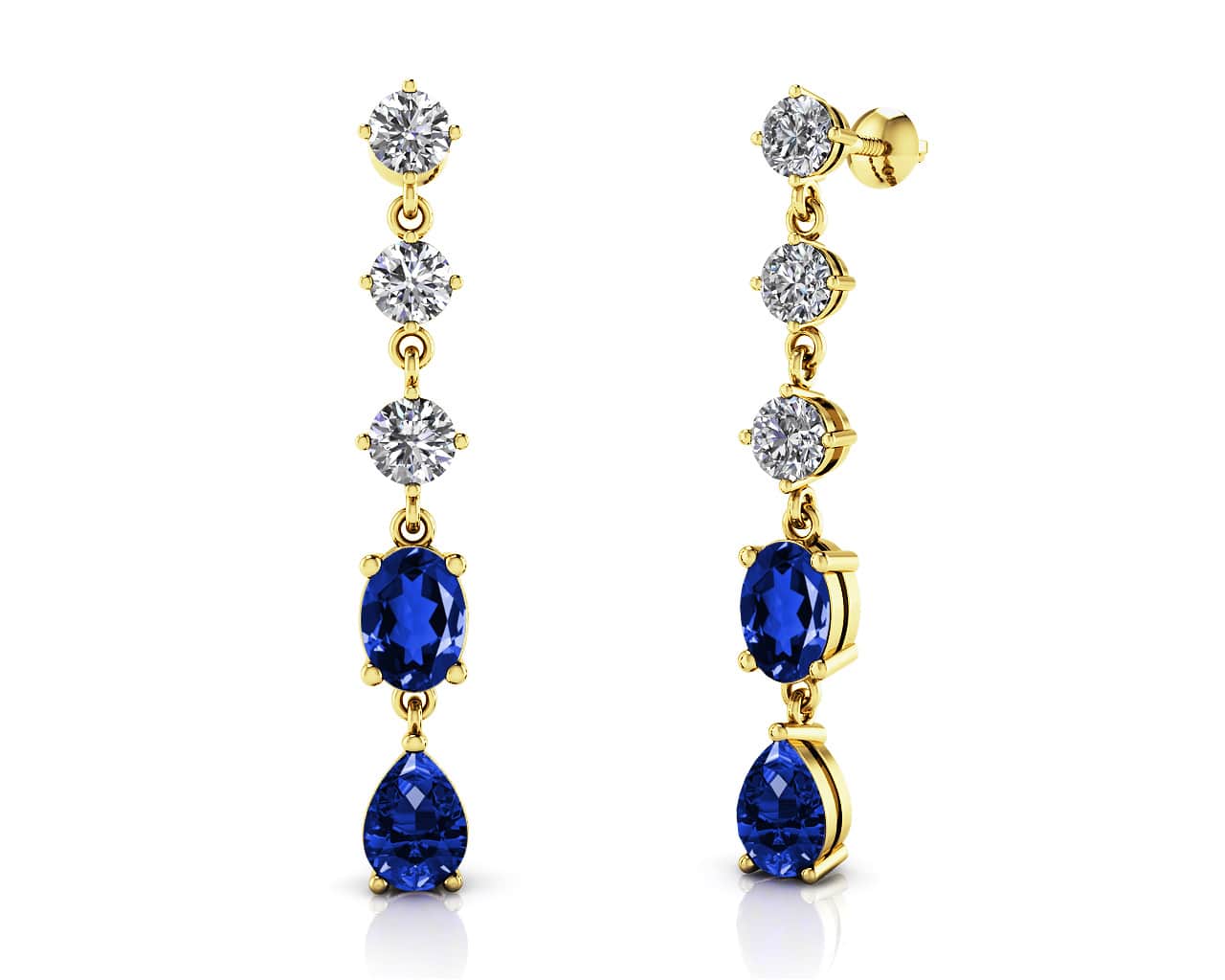 You will shine with these unforgettable diamond and gemstone drop earrings. Brilliant round diamonds cascade down to highlight an oval and pear-shaped natural gemstone of your choice at the bottom. Design yours today in your choice of metal and diamond quality.