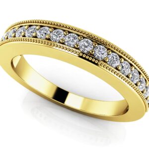 A wonderful accompaniment to many of our engagement rings including our Six Prong Side Channel Engagement Ring , this beautiful band features either 15 or 24 diamonds that are channel-set along the top of the ring in a gleaming row! The total diamond carat weight is either .24 ct. or .50 ct. The band has a milgrain edge that sits very comfortably on the finger. If you’re looking for a fabulous way to commemorate an anniversary, this would be an excellent choice! Pick this one up in your choice of yellow gold, white gold or platinum today!