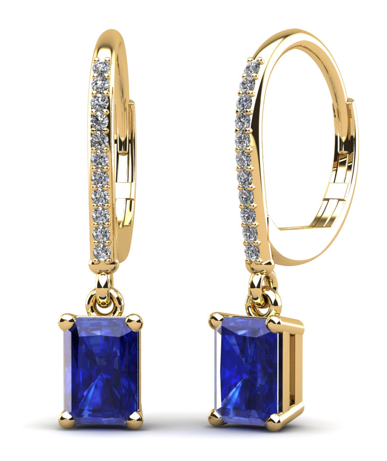 This stylish pair of earrings combines beloved emerald cut gemstones with drop hoops featuring sparkling diamond accents. Choose the carat size she will love with either 14 or 18kt yellow, rose or white gold or platinum.