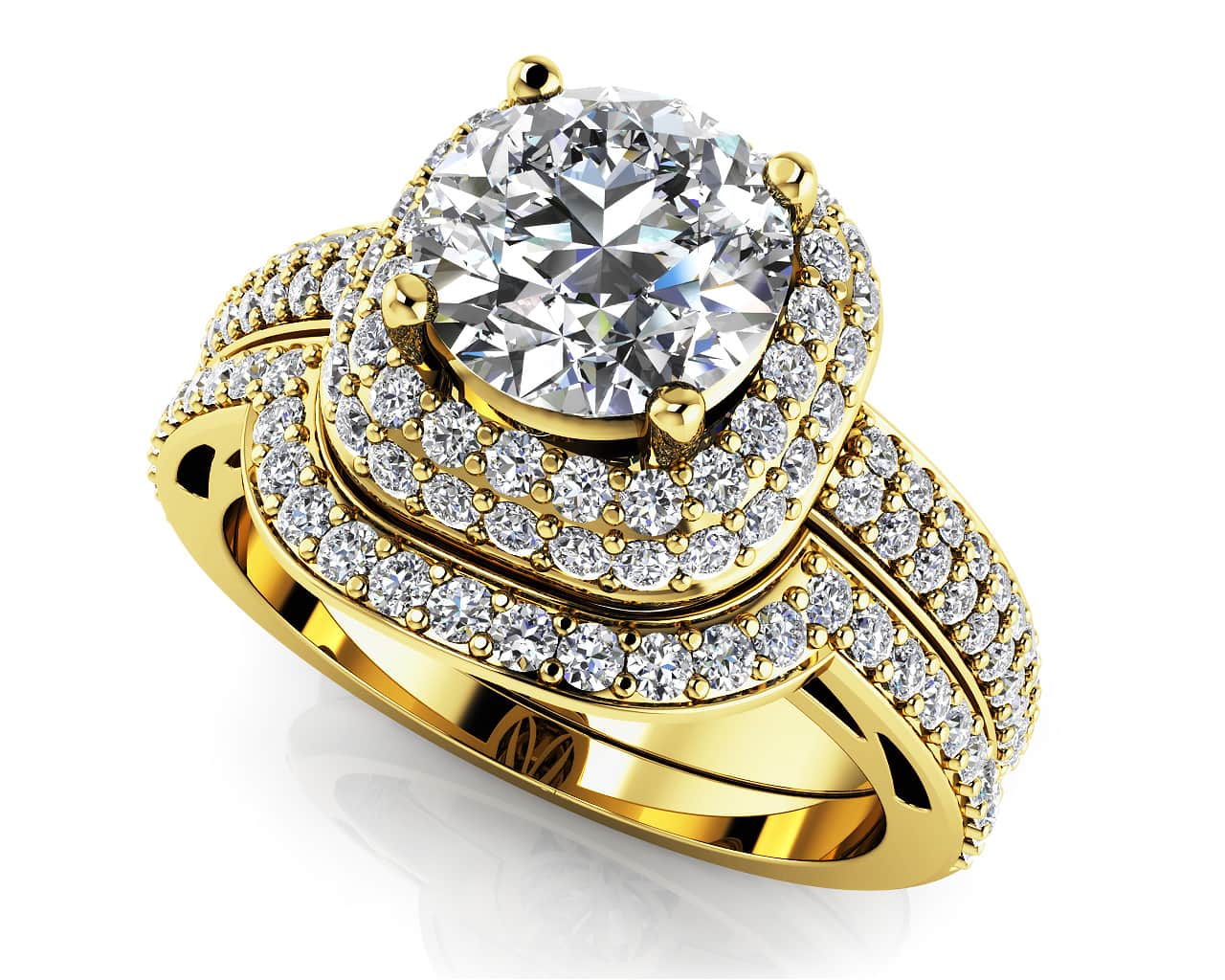 Modern Double Halo Bridal Set In 18K 14K Yellow Gold White Gold And Platinum