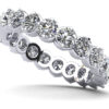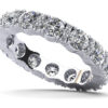 This fashionable diamond anniversary ring features a mix of baguette and round diamonds in a modern, four prong setting. Select yours in your choice of 14k or 18k yellow, rose or white gold or platinum.