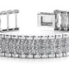 This is a fabulous bracelet that absolutely any gentlemen would be proud to wear! It’s a masterpiece, carefully crafted in your choice of two tone gold or platinum. Each center column holds 3 magical diamonds, 99 in total, and the links are held together by contrasting metal caps. Pair this 2 carat masterpiece with a fabulous suit and you’re ready to take on the world!