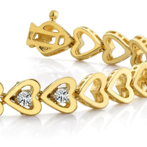 The ‘heart’ is the universal symbol of love, and this incredible bracelet is a great way to show yours! The open heart links can be crafted in gold or platinum, and this bracelet is available in 2 sizes. Six fabulous diamonds are prong-set, but seem to ‘float’ in the middle ‘heart links’ on this bracelet. Of course, we always try to give you options, and this bracelet is a great one to customize. You can add a diamond or several. Why not show off your design prowess today!