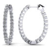 These beautifully designed diamond hoop earrings are a staple in your wardrobe. The earrings are oval shaped and feature diamonds in the front and back parts facing forward. The approximate height of the earrings are 1.1 inches. The earrings are available in different total carat weights and metal types to fit your taste and budget.