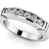 A lovely channel setting keeps 10 princess cut stones secure in this exclusive anniversary ring design. The stones alternate between a dazzling diamond and a vibrant gemstone of your choice. There are five sizes to choose from between .50 and 1.55 total carat weights. Customize in white gold, yellow gold or pretty platinum for a ring that shines bright!