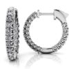 These extra large diamond hoops have one row of prong set diamonds set along the front of each earring. The shape of these hoop earrings is round and they are 1.32 inches high. An easy snap mechanism keeps the post safe in your ears. Choose from five different sizes ranging from .64 to 1.69 total diamond carat weights. Available in any metal type so you can choose a pair that reflects your style!