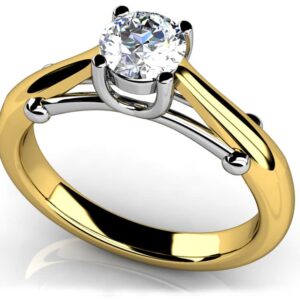 This is a wonderful solitaire with that âlittle something extraâ, courtesy of our design team! The round, prong-set diamond sits perfectly on a raised âbridgeâ, and on either side the âsupportsâ highlight on either side of the ring. It is available in 3 stone sizes, in half, ¾ or 1 carat total diamond weights. And in your choice of either two-tone gold or platinum, youâll definitely find the perfect option for you!