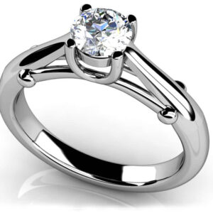 This is a wonderful solitaire with that âlittle something extraâ, courtesy of our design team! The round, prong-set diamond sits perfectly on a raised âbridgeâ, and on either side the âsupportsâ highlight on either side of the ring. It is available in 3 stone sizes, in half, ¾ or 1 carat total diamond weights. And in your choice of either two-tone gold or platinum, youâll definitely find the perfect option for you!