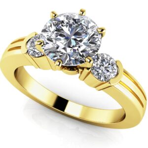 Here’s a lovely choice if you’re looking for an engagement ring that combines dazzling design with ‘Fit for a Queen’ elegance! The band, in your choice of gold or platinum, features two subtle ridges all the way around, giving the ring even more dimension. On either side of the center stone, we’re placed two fabulous .13 carat diamonds. You can choose which center stone you’d like to add to this incredible piece. With options ranging from .50 a carat to 1.5 carats, you’ll find one to match your style & budget. Wait till she sees this one!