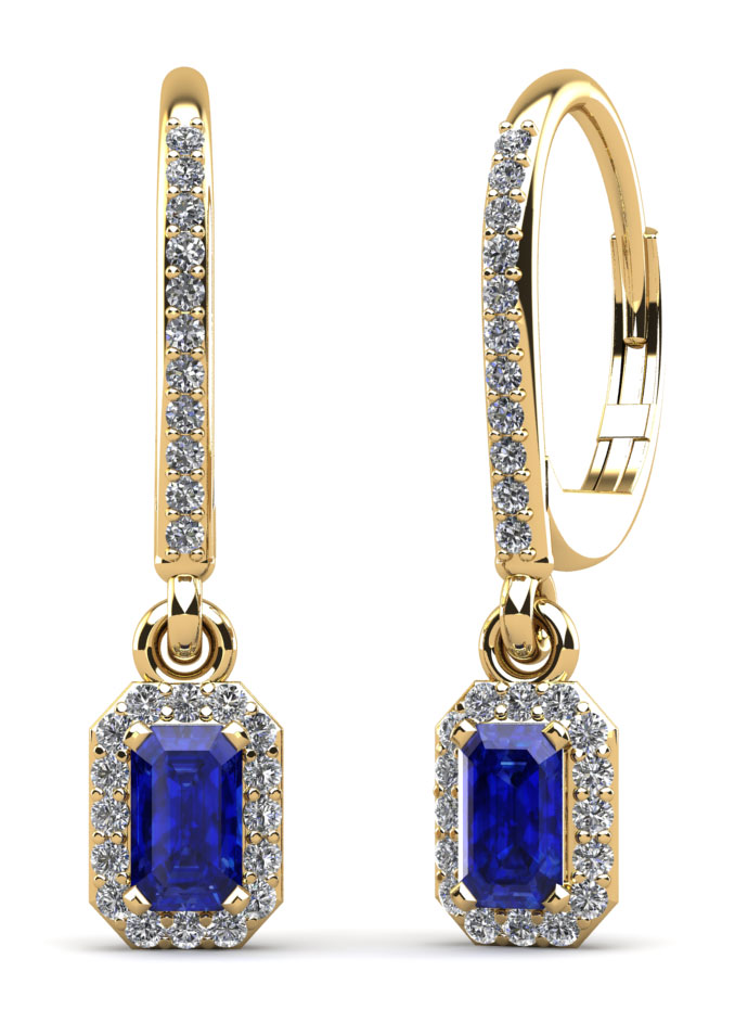 Create a sparkling romantic touch each time you wear these stunning drop earrings. An exquisite emerald cut gemstone is surrounded by a halo of brilliant round diamonds for a dramatic look on each ear. Set in your choice of gold or platinum and available in 3 carat weights, these beautiful earrings are a memorable look.