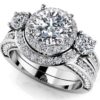 Create timeless romance with this amazing bridal set. It features a halo of round diamonds that surrounds the pear shaped center stone. The set has a sparkling wedding band of round diamonds to complete the bridal set. This is a romantic reflection of your everlasting love.