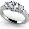 You know she’ll say YES when she sees this incredible solitaire! The diamond is round, and sits perfectly in a lovely 6 prong setting which further highlights the incredible way this diamond picks up the light. Featuring a raised, rounded band, it’s available in 2 sizes, either .80 of a carat or 1 carat total diamond weight. All you have to do is choose the size, and whether you want this crafted for you in gold or platinum, the rest is up to her!