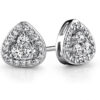 These modern and elegant diamond earrings feature an eye-catching triangular shape that raise the bar for excellence! Three brilliant round diamonds are encircled with a perfect halo of more sparkling diamonds in a robust 14kt white gold setting. These unique earrings are available in 3 sizes: .30 ctw, .40 ctw and .60 ctw.
