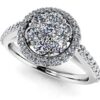 Define the love you hold for each other with this beautiful engagement ring. An elegant solitaire diamond is surrounded by round channel set diamonds to sparkle with radiant light. Choose yours today from several center stone carat weights in a choice of gold or platinum setting.