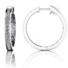 A single row of sparkling diamonds is held secure with a shared four prong setting in this beautiful inside out diamond hoop earring design. Design yours in 5 available carat weights and customize according to metal type, size and diamond quality to create your unique pair of earrings.