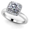 Start your forever journey with the perfect symbol of love. A stunning cushion cut diamond is surrounded by a sparkling halo of round diamonds for the ultimate look of romance. Design yours today! Available in several carat weights in your choice of gold or platinum setting.