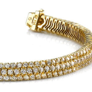 If you’re looking for a fabulous piece that says .Classic Hollywood., this is it! Featuring three rows of incredible, round, prong-set diamonds, it’s a real Red-Carpet stunner! The centre row is crafted with larger stones, and the outside rows with stones that are slightly smaller. It is available in your choice of 6 different total diamond weights, ranging from 4 to 9 carats. Hollywood never looked so grand!