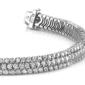 If you’re looking for a fabulous piece that says .Classic Hollywood., this is it! Featuring three rows of incredible, round, prong-set diamonds, it’s a real Red-Carpet stunner! The centre row is crafted with larger stones, and the outside rows with stones that are slightly smaller. It is available in your choice of 6 different total diamond weights, ranging from 4 to 9 carats. Hollywood never looked so grand!