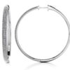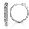 Another dimension of sparkle is created with this inside out hoop earring style. A single row of sparkly prong set diamonds line the front side and inside of this hoop earring design. These small sized hoops are the perfect accessory for any occasion. There are 5 sizes to choose from ranging from .48 carat to 1.17 carat. An ideal gift for the women in your life, these earrings can be custom made according to your choice in metal type and diamond quality. This diamond earring style is available in medium and large sizes also.