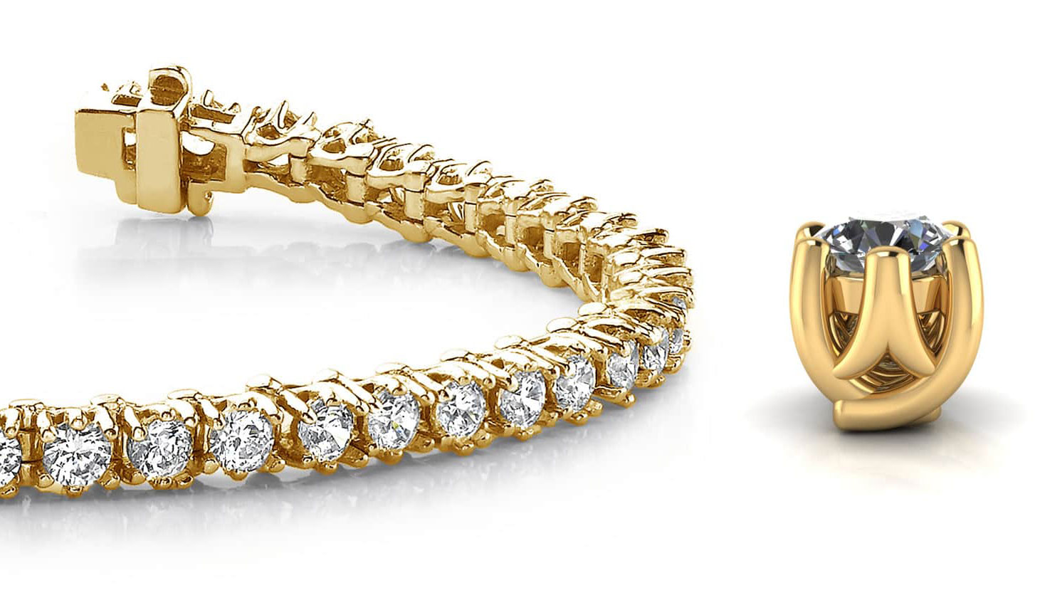 Truly classic! There’s simply no other fitting description for this bracelet. It features an incredible strand of round diamonds, each set in a fabulous, 6-prong setting. The stones sit shoulder to shoulder all the way around this piece, and it’s available in 5 different sizes, ranging from 1.5 to 5 carats. You can have it carefully crafted in either gold or platinum . so go on . put this classic in your jewelry box today!