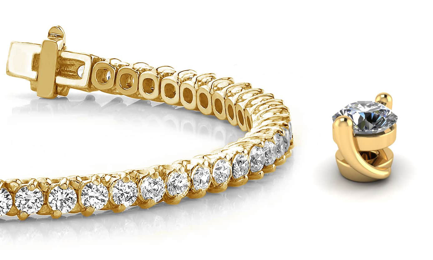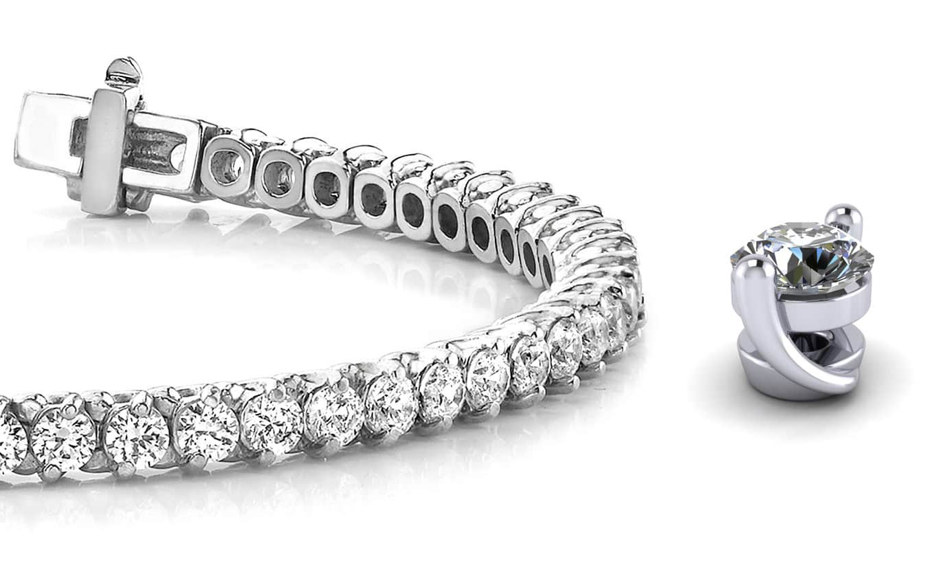 This is a lovely, two-prong diamond bracelet with style & elegance. The slanted & curved links are crafted in your choice of gold or platinum, and this bracelet offers not only style, but plenty of versatility. It’s available in 6 different sizes! Ranging from 2 to 7 carats total diamond weight, you’ll be sure to accommodate your style & your budget!