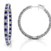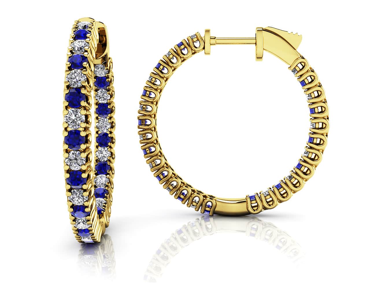 A stylish curved prong setting is just one of the eye-catching elements of the design of these alternating gemstone and diamond hoop earrings. These hoop earrings feature ab inside out design with gemstones and diamonds set along the front side of the earrings and inside the hoop. These earrings are available in 4 different sizes and measure at .90.. Customize a pair in your favorite metal type; yellow gold, white gold or platinum and the gemstone of your choice!