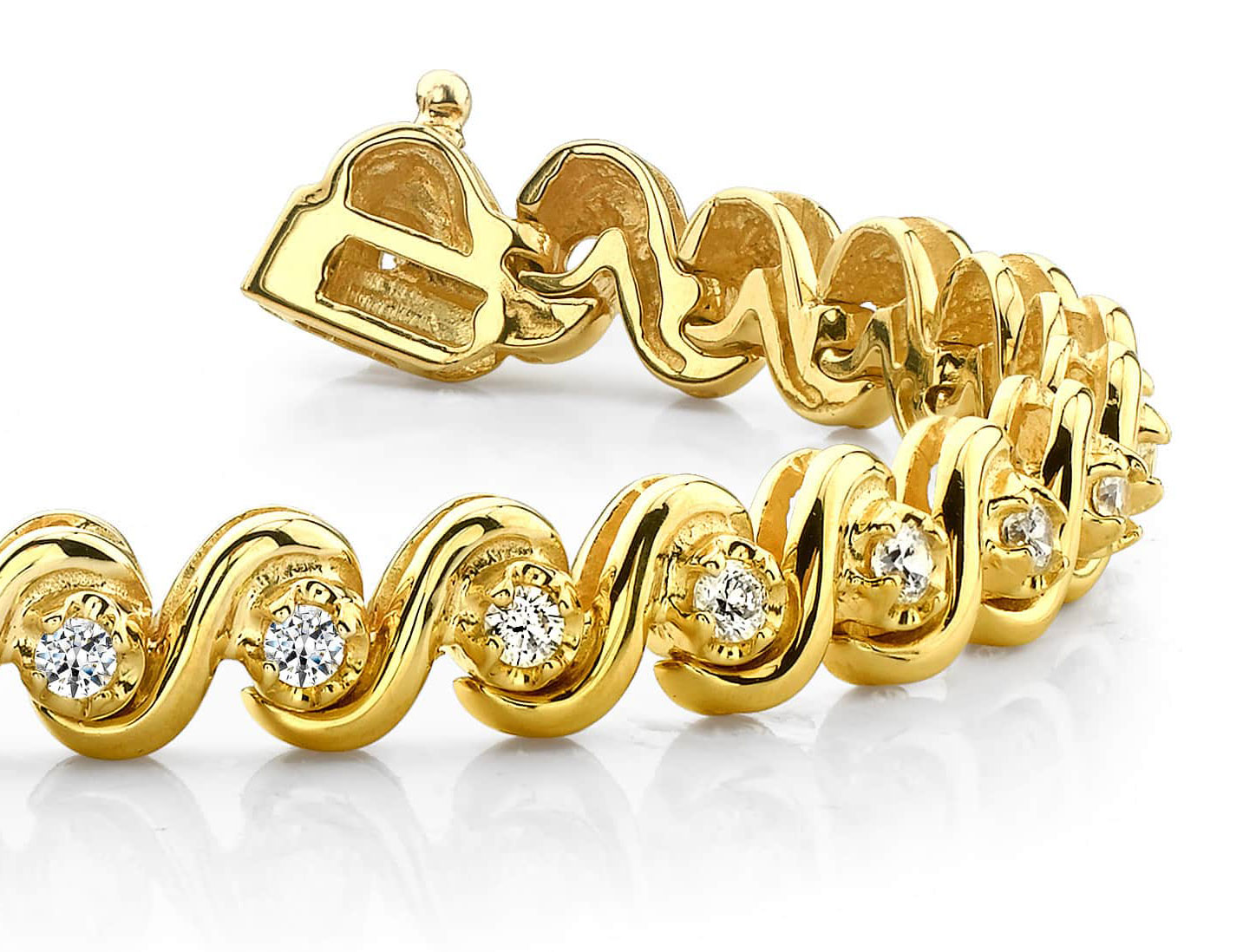 Smart S Diamond Tennis Bracelet In Yellow White Gold Or Platinum